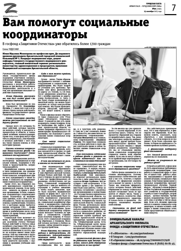 - «Вам помогут социальные координаторы. В филиал госфонда «Защитники Отечества» в Архангельской области уже обратилось более 1700 граждан».