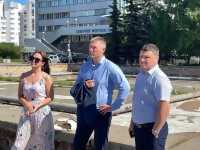 На реконструируемой площади Профсоюзов прошло выездное заседание представителей администрации, ГИБДД и подрядчика. В нём приняли участие председатель Архангельской городской Думы Иван Воронцов и депутат Максим Хохулин.