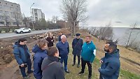 Комиссия посетила берег реки Кузнечиха в Октябрьском округе, где в начале мая начались работы по благоустройству верхней набережной от предмостной площади до площадки «Алвиза».