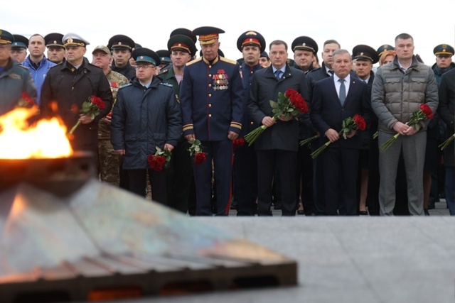 Участники мероприятия почтили память павших минутой молчания. В рамках акции «Свечи памяти» зажгли свечи. На площади Мира ветераны боевых действий, представители общественных организаций и молодежных патриотических объединений развернули копию Знамени Победы.