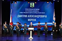 Следуя Уставу Архангельска, Дмитрий Морев дал присягу, пообещав действовать в рамках закона и на благо жителей. После этого ему был передан официальный знак отличия – знак «Глава городского округа «Город Архангельск».