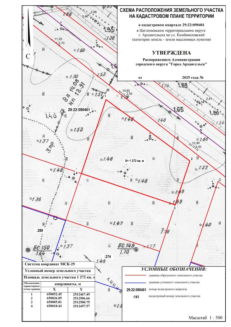 Департамент градостроительства Администрации городского округа "Город Архангельск" извещает о возможности предоставления земельного участка, расположенного в Цигломенском территориальном округе г. Архангельска по ул. Комбинатовской площадью 1 272 кв. м, для индивидуального жилищного строительства согласно представленной схеме расположения земельного участка.