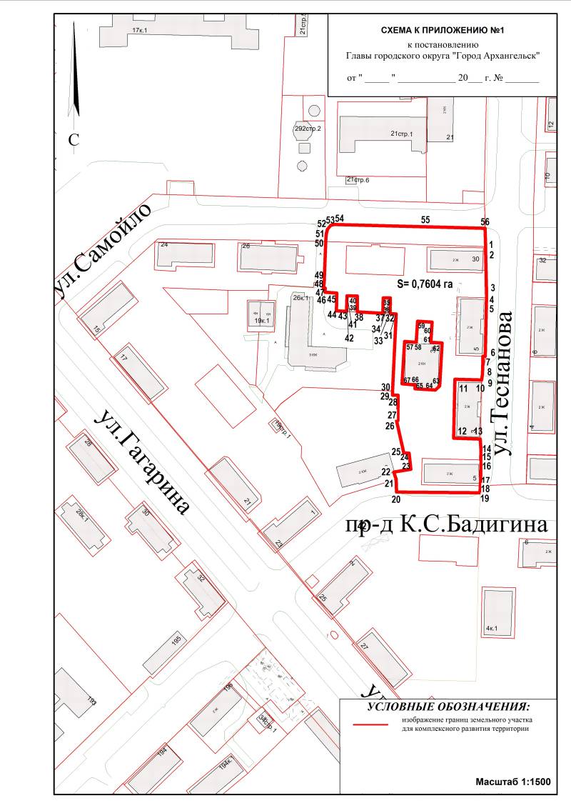 Комплексное развитие территории жилой застройки городского округа "Город Архангельск" в границах части элемента планировочной структуры: ул. Гагарина, ул. Самойло, ул. Теснанова, пр-д К.С. Бадигина площадью 0,7604 га