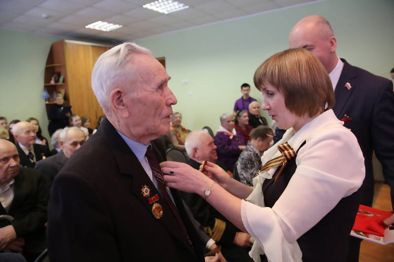 По поручению мэра Архангельска Виктора Павленко ветеранов и гостей церемонии поздравила заместитель главы округа Варавино-Фактория Любовь Ломовцева.
