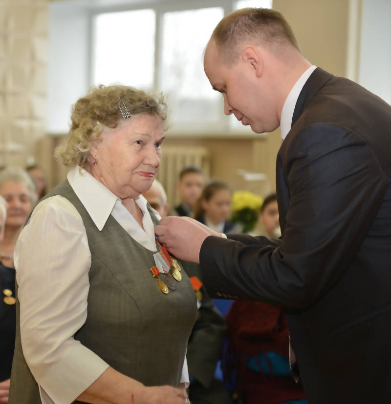В почетном карауле замерли школьники. Под аплодисменты собравшихся началось чествование людей, которые на полях сражений и в тылу ковали долгожданную победу. Ветеранам вместе с медалями вручали подарок от мэра Виктора Павленко - уникальную книгу «Архангельск - город воинской славы» о военном подвиге нашего города, вышедшую в муниципальном издательском центре.