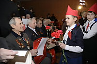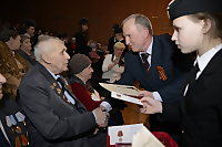 - Наши родители росли в трудные послевоенные годы. Под мирным небом выросли мы, в мирное время растим сейчас нашим детей и, дай Бог, наши внуки и правнуки тоже будут жить под мирным небом. И все это благодаря вам. Ветераны Великой Отечественной молодыми мальчишками и девчонками ушли на фронт и встали у станков, работали в колхозах. Вы отстаивали независимость нашей Родины, вы восстанавливали страну из руин после войны. Низкий поклон вам за это, живите подольше, пожалуйста, рассказывайте нынешнему поколению об ужасах той войны, рассказывайте им о друзьях, что не вернулись с войны или умерли от ран. Для молодежи вы – пример патриотизма, мужества, стойкости. Как в песне из знаменитого фильма «Офицеры»: «Этот взгляд - словно высший суд для ребят, что сейчас растут», - сказал Сергей Валерьевич.