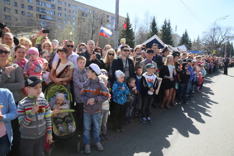 Вместе со своими детьми, внуками и правнуками по главной улице незримо маршируют фронтовики. Те, кто навсегда остался в сердцах потомков. В первом ряду портрет своего деда несет и Татьяна Цыварева.