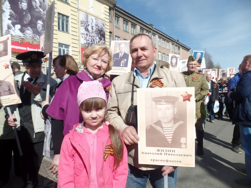 В «Бессмертном полку» прошла семья Жилиных – Олег Анатольевич, Галина Владимировна и их внучка Алина.