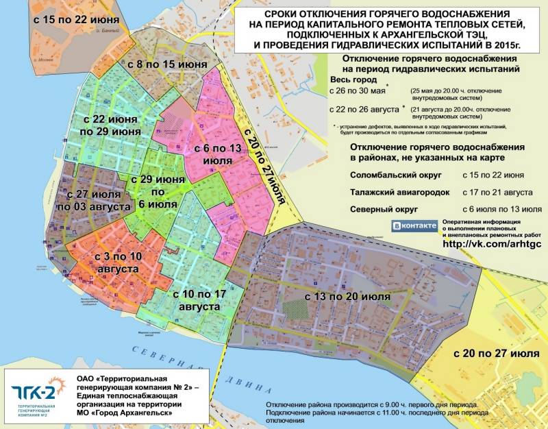 План-график отключения потребителей для проведения испытаний и капитального ремонта тепловых сетей от Архангельской ТЭЦ в 2015 году (предоставлен ОАО ТГК-2).