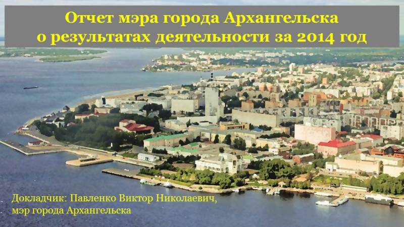 В соответствии со 131-ым Федеральным законом и Уставом города представляю вам отчет о проделанной мэрией Архангельска работе в 2014 году.