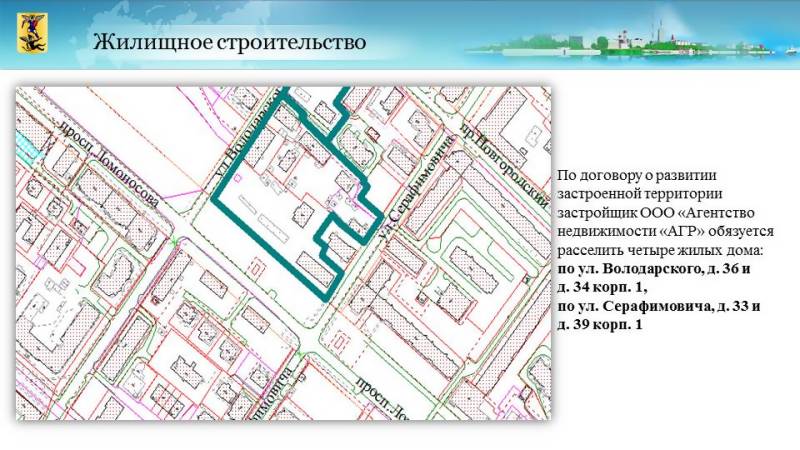 Поскольку сейчас в законодательство внесены изменения, у муниципалитета появилась возможность направить средства в рамках 3-го этапа программы на многоэтажное строительство. При этом основной объем нового строительства придется на новый микрорайон на пр. Ленинградский, рядом с «ветеранскими» домами. Однако для этого требуется решить вопросы с обеспечением данного участка инженерной инфраструктурой.