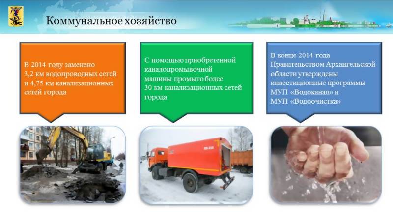 В целях реализации утвержденной Программы комплексного развития системы коммунальной инфраструктуры Архангельска, а также привлечения средств для модернизации водопроводно-канализационного хозяйства в 2014 году были утверждена Схема водоснабжения, водоотведения до 2025 года.