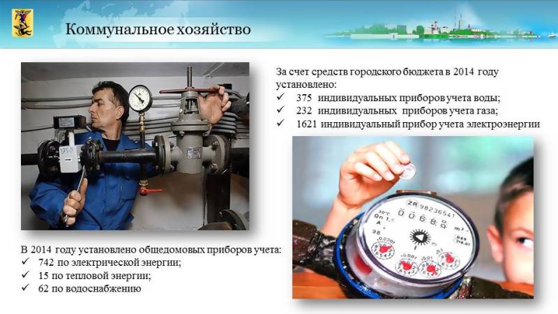 Основой экономии коммунальных ресурсов является их четкий учет. В течение 2014 года было установлено - 742 общедомовых прибора учета электрической энергии, 15 - тепловой энергии, 62 - водоснабжения. Таким образом, на 1 января 2015 года 3446 многоквартирных домов соответствуют требованиям федерального законодательства об энергосбережении в части установки приборов учета, что составляет 60% от общего количества жилищного фонда.
