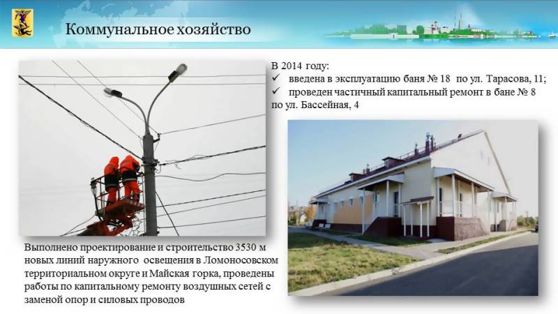 В сфере коммунального хозяйства одной из задач является обеспечение населения города банными услугами. Более 68 тысяч жителей Архангельска, или почти 20% населения проживают в неблагоустроенном жилье без горячего водоснабжения. Поэтому надежное функционирование бань - это вопрос санитарной безопасности. В 2014 году оказание услуг населению осуществлялось в 19-ти подразделениях МУП «Горбани». Это единственная организация, имеющая свои подразделения во всех районах города, включая островные и отдаленные территории Архангельска. В год городские бани моют более 300 тыс. человек, из них половину - по льготному тарифу. На сохранение самого низкого на Северо-западе тарифа на услуги муниципальных бань, а также льготных тарифов для ветеранов и бесплатную помывку детей до 3-х лет мы выделили МУП «Горбани» субсидию в размере более 40 млн. руб.