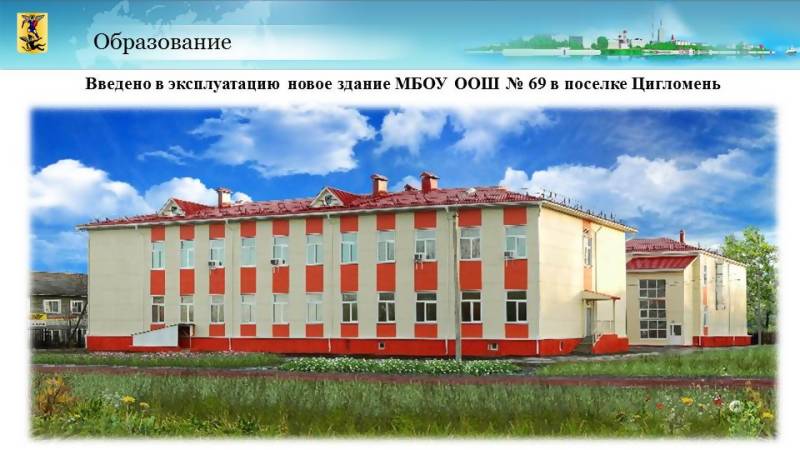В марте 2014 года введено в эксплуатацию новое здание школы № 69 в Цигломени на 240 мест. В школе предусмотрены спортивные, актовые залы, столовая оснащена современным технологическим оборудованием. Школьная мебель подобрана с учетом существующих норм безопасности и современных требований эргономики. При строительстве объекта были также учтены требования по созданию доступной (безбарьерной) среды для учащихся с ограниченными возможностями здоровья – входы оснащены пандусами, на этажах размещены специально оборудованные санитарные комнаты, в классах предусмотрены места для установки специализированной школьной мебели.