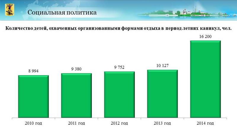Организованными формами отдыха в период летних каникул 2014 года было охвачено 16200 детей, что составляет 45% от числа детей школьного возраста или в 1,6 раза больше чем в 2013 году.