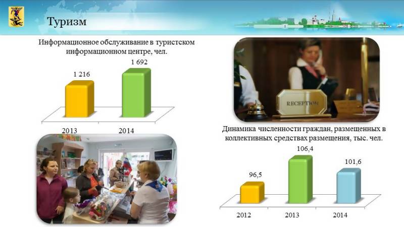 В 2014 году продолжил свою работу городской туристский информационный центр, деятельность которого направлена на информационное обслуживание туристов, привлечение их внимания к объектам туристского показа в городе. В отчетном году ТИЦ посетили 1692 человек, что в 1,4 раза больше чем в 2013 году.