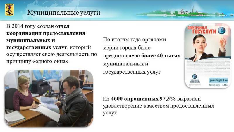 По итогам 2014 года органами мэрии Архангельска было предоставлено более 40 тысяч муниципальных и государственных услуг.