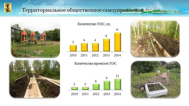 По итогам 3 конкурсов 8 ТОСам из городского бюджета были предоставлены субсидии в сумме 1,9 млн. руб. на реализацию 11 социально-значимых проектов. Основным направлением расходования бюджетных средств ТОС являлось выполнение работ по благоустройству территории. Немаловажно, что 400 тыс. руб. на реализацию проектов внесли сами участники ТОСов.