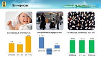 В первую очередь, это, безусловно, человеческие ресурсы. С учетом естественного и миграционного прироста в 2014 году численность населения нашего города увеличилась до 358 054 человек. Отмечу, с 2012 года в Архангельске фиксируется естественный прирост населения, то есть превышение рождаемости над смертностью. Естественный прирост населения в 2014 году увеличился почти в два раза. В 2014 году в Архангельске родилось 4311 младенцев, что на 96 детей больше, чем в 2013 году. Также отмечу, что в Архангельске наблюдалось положительное сальдо миграции: численность прибывших увеличилась на 7,9%, а выбыло на 5,2% меньше, чем в 2013 году.