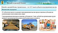 Сегодня малый и средний бизнес Архангельска – это более 14,5 тыс. субъектов предпринимательства. Всего в малом бизнесе занято более 58 тысяч человек или 36% занятых в экономике города. Доля налоговых поступлений от субъектов малого и среднего бизнеса, уплачиваемых с применением специальных налоговых режимов, составила в 2014 году 9,8%, увеличившись в 1,2 раза по сравнению с 2013 годом.