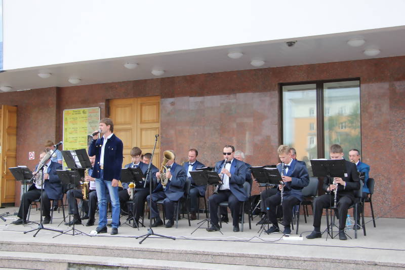 В рамках IV фестиваля духовой музыки «Дирекцион Норд» на площади у областного театра своё творчество подарили зрителям оркестры Котласа и Мезени.