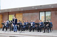 Праздничную программу на площадке у театра открыл народный духовой оркестр из Мезени, дирижером которого является Юрий Богданов. Оркестр существует 30 лет и в его составе 13 музыкантов.
