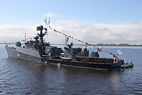 - На флагмане все должно быть безукоризненно и соответствовать строжайшему морскому порядку, поэтому корабль, прошедший плановый ремонт в конце мая, незадолго до Дня ВМФ был снова покрашен от киля до клотика, тщательно подготовился к параду и экипаж, - рассказал накануне парада командир корабля капитан 3 ранга Эдуард Ромашов.