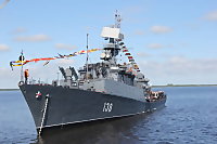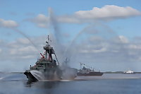 Среди участников парада - МПК «Онега», который был заложен на судостроительном заводе в Зеленодольске в 1990 году, спущен на воду и вошел в состав флота в 1991 году. Корабль регулярно принимает участие в командно-штабных и зачетно-тактических учениях флота.