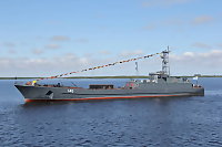 Еще один участник парада – военный транспорт, бывший средний десантный корабль проекта 773 - ВТР-140. Он был построен на судоверфи в Гданьске и спущен на воду 20 декабря 1971 года. Корабль не утратил своих свойств по высадке на необорудованное побережье и сразу после парада отправиться в поход, доставляя новую технику на радиотехнические посты ВМФ на побережье Белого моря.