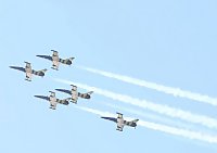 Программа демонстрационного выступления группы над Архангельском включала в себя практически неповторяющиеся фигуры пилотажа, выполняемые в плотном строю в составе 5 самолётов. Постоянное перестроение самолётов при выполнении фигур, расхождение на несколько групп для показа разнообразия элементов программы, кажущаяся плавность и лёгкость, в совокупности с одиночным спортивным пилотажем, оставило незабываемое впечатление у зрителей.