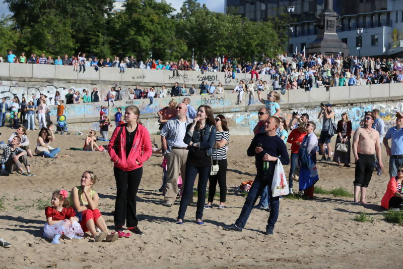 В Архангельске пилоты продемонстрировали все стандартные фигуры высшего группового пилотажа, а также индивидуальные элементы такие как «Пронзенное сердце» и «Букет». Пять машин в течение получаса разрезали небо над столицей Поморья с немыслимыми маневрами, зачастую, на скоростях превышающих 700км/ч, под оглушающий рев турбин, оставляя за собой шлейф дымов. Это зрелище захватывало дыхание у зрителей став финальным аккордом празднования Дня ВМФ в Архангельске.
