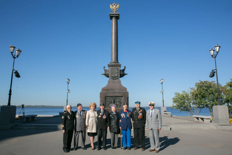 Свое путешествие четверо юнг начали со стелы «Архангельск - город Воинской Славы» - памятника героизму архангельских мореходов, простых жителей столицы Поморья, открытого 31 августа 2011 года на