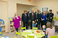 Вначале гости побывали в помещении группы, где занимаются самые маленькие воспитанники детского сада. Для них сделана уютная раздевалка, оборудованное специальной мебелью и оснащенное современными игрушками игровое помещение, туалетная комната со специальной сантехникой, отдельная спальня и даже свой буфет.