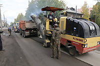 Субподрядчик МУП «Архкомхоз» - ЗАО «АГСУМ» провело фрезерование дороги, завершило укладку выравнивающего и нового верхнего слоя асфальтобетонного покрытия. Также выполнены работы по ремонту 10 горловин люков и дождеприемных колодцев.