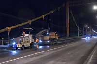Также продолжается текущий ремонт покрытия Кузнечевского моста. На протяжении 385 м от предмостной площади на ул. Гагарина до съезда на ул. Советская завершено фрезерование дорожного покрытия. В ночь с воскресения на понедельник дорожники планируют завершить укладку нового асфальта на всем протяжении моста. Всего планируется на мост обновить 5200 квадратных метров покрытия.