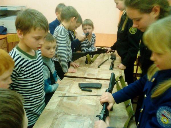Проводила экскурсию член клуба Анастасия Мягконосова, а ребята, обучающиеся в ее группе, поработали инструкторами, показав гостям мастер-класс по обращению с автоматом «АК 74». Каждый попробовал разобрать и собрать оружие, смог задать интересующие вопросы. Дети остались довольны и обещали прийти еще.