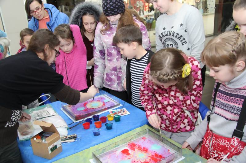 На площадке «Дом – это место, где твое сердце» изготавливали открытку - домик, который полон счастья, любви и гармонии. Объединили всех анимационные игры для детей и родителей «Непоседы», изготовление новогодних подарков и игрушек. Огромным интересом пользовалась мастерская искусства росписи по воде «Эбру».
