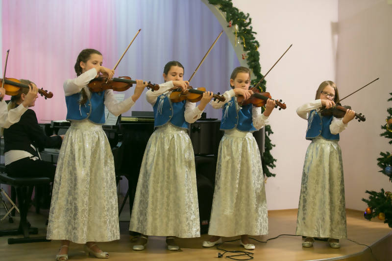 На новогоднем концерте юные таланты «Гармонии» демонстрировали то, чему их научила школа искусств. Нежные звуки флейты ансамбля «Хорошее настроение» сменяли звонки голоса концертного хора «Гармонии», сестры Гладьо виртуозно исполнили «Кулблюз» на фортепиано в четыре руки. Аплодисменты зрителей были еще одним признанием упорного труда воспитанников и педагогов детской школе искусств № 42 «Гармония».