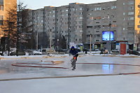 Сейчас ведется заливка самой площадки на пл. Ленина, общей площадью 2 тыс. кв. м. Уже смонтировано освещение на 14 столбах, установлено два модуля для раздевалок. Также любители активного отдыха смогут попить чай и кофе из установленных здесь автоматов.