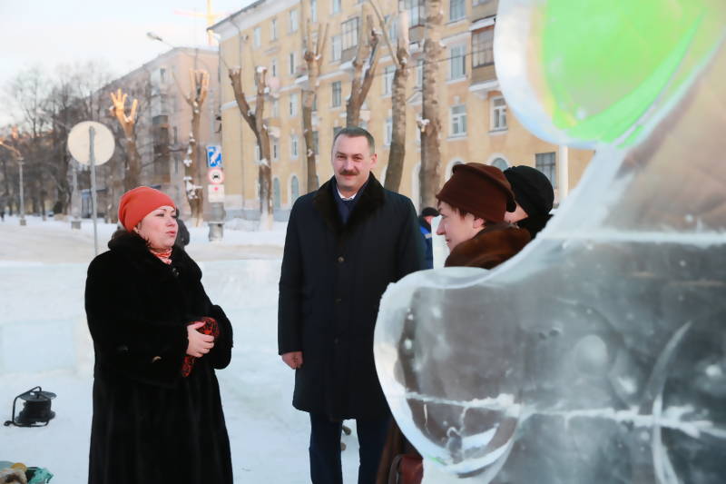 В последний день уходящего года глава Архангельска Игорь Годзиш побывал на ледовом катке на пл. Ленина и в зимней резиденции Архангельского Снеговика на набережной Северной Двины в районе пл. Мира.