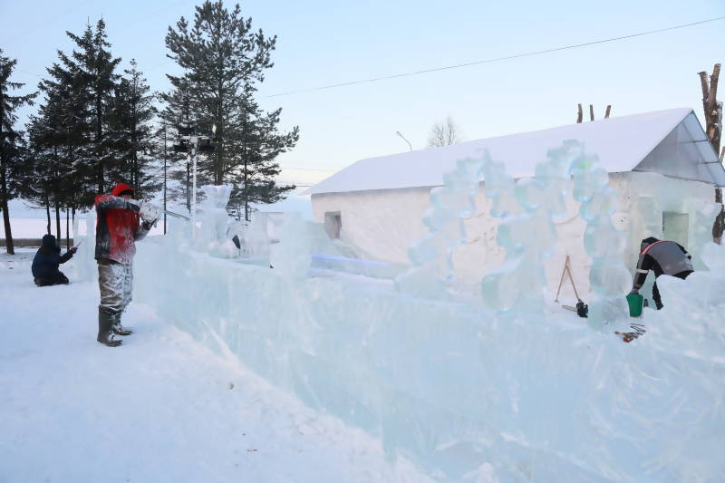 А на Набережной Северной Двины в районе пл. Мира уже появляются первые ледовые чудеса. Возведен под крышу снежный дом, в котором в первый день Нового года поселится веселый и добрый хозяин – Архангельский Снеговик.