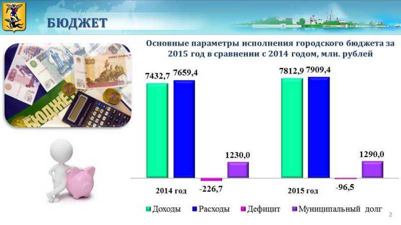 Традиционно первая часть отчета коснулась городского бюджета. Так, главный финансовый документ Архангельска в прошлом году был исполнен по доходам в сумме 7,8 млрд. рублей или на 99,8 % от плановых показателей. При этом собственные доходы составили 4 млрд. 376 млн. рублей и выросли на 1,7% по сравнению с 2014 годом.