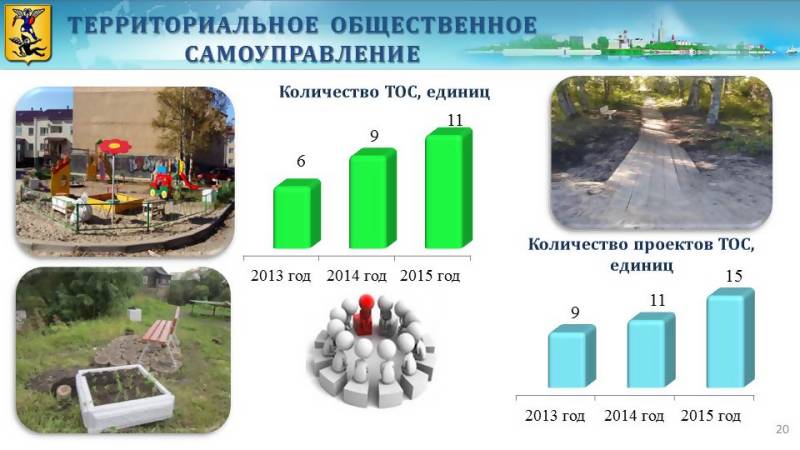 - В столице Поморья сегодня действует 11 ТОСов, в которые объединены более 15 тысяч человек. В 2015 году ТОСами реализовано 15 проектов. В основном это проекты по благоустройству территории. Таким образом, люди берут на себя реализацию такой важной задачи, как создание комфортной для жизни среды, сами принимают решение о том, что им необходимо. Такой хозяйский подход крайне важне и нужен сегодня Архангельску. Поэтому замечательно, что у горожан наблюдается живой интерес к ТОСам. В планах на 2016 год создавать ТОСы не только на окраинах, но и в центральной части города, - сказал Игорь Годзиш.
