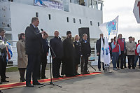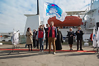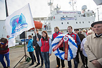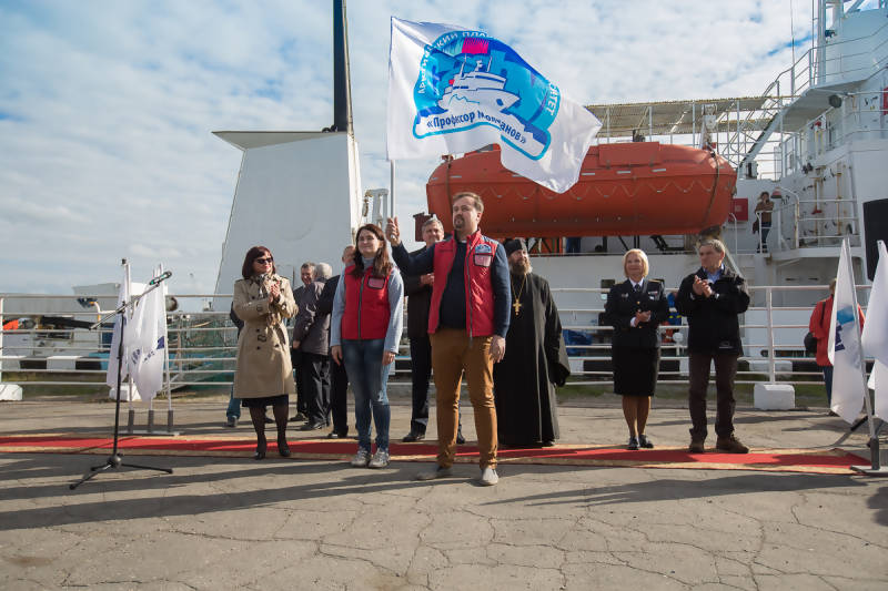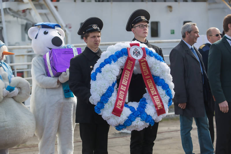 По традиции перед отправлением состоялась торжественная церемония чествования покорителей арктических просторов. Еще раз подчеркнул значимость экспедиции не только для современной науки, но и для развития кадрового потенциала региона председатель правительства Архангельской области Алексей Алсуфьев: