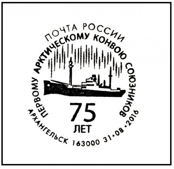 На Главпочтамте 31 августа в 11:00 состоится памятное гашение филателистической продукции художественным штемпелем, специально изготовленным к 75-летию прибытия в Архангельск первого арктического конвоя союзников.