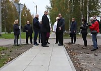 В летний сезон в Северном округе впервые за многие годы был произведен большой объем дорожного ремонта, кроме того, положено начало восстановлению тротуаров в микрорайоне Первых пятилеток. Почти километр пешеходной дорожки выложен по ул. Химиков. Глава Северного округа Игорь Трофимов показал градоначальнику итог трехэтапной работы и рассказал, что жители выражают благодарность за качество и удобство обновленного тротуара. В следующем году предстоит организовать благоустройство скамейками и подумать над дополнительным озеленением, поскольку пешеходная дорожка после ремонта превратилась в настоящую прогулочную зону.