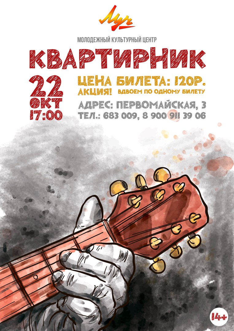 Команда молодёжного культурного центра «Луч» приглашает всех любителей песен под гитару на наше традиционное мероприятие – «Квартирник для друзей», который состоится 22 октября в 18 часов.