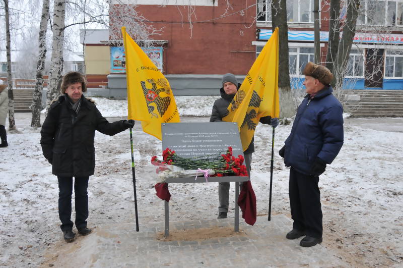 Долгие годы многие исторические страницы Первой мировой войны замалчивались, некоторые события и герои были преданы забвению, но сейчас интерес к истории России и Архангельска начала прошлого века возрождается с новой силой. Усилиями общественников, историков, активистов регионального отделения Российского военно-исторического общества была проведена большая работа, итогом которой станет размещение на площади у ДК «Бакарица» памятного знака. Сегодня же на этом месте открыли закладную плиту и провели памятный митинг.