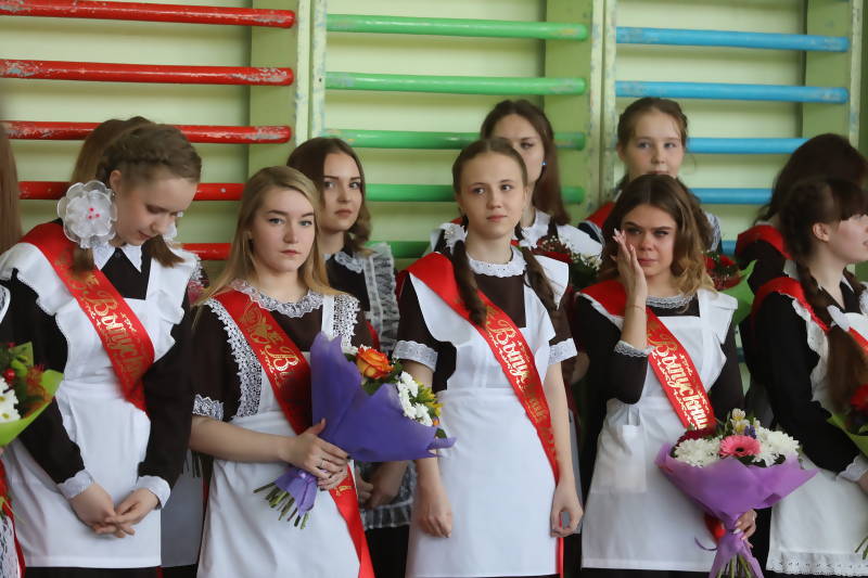 При взгляде на выпускников гордостью светятся глаза взволнованных родителей и педагогов: стройными рядами вошли в зал девушки в школьной форме старого образца, с белоснежными фартуками и бантами в волосах, парни в классических строгих костюмах.